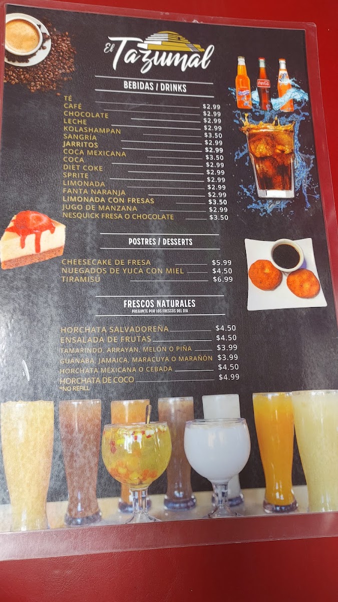 When you're looking for a place to enjoy delicious, authentic dishes, the El Tazumal Menu has something that’ll definitely hit the spot. Located at 14621 San Pablo Ave, San Pablo, CA, this spot brings a rich variety of flavors right to your table. From the first bite to the last, you'll feel like you're experiencing a true celebration of traditional tastes. Whether you're craving savory mains or something lighter to snack on, there's a dish for everyone. And if you're in the mood to explore new flavors, the menu offers plenty of exciting options that promise to keep your taste buds intrigued. It's a place where casual dining meets bold flavors, perfect for a fun and relaxed meal with friends or family. Every item on the menu has been crafted to deliver that perfect balance of fresh ingredients and delicious seasoning, making it easy to find your new favorite dish.